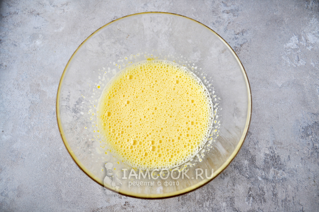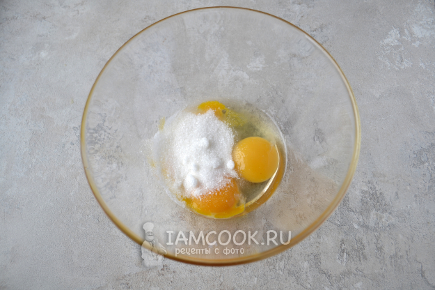 В глубокую миску разбейте яйца, добавьте сахар и щепотку соли.