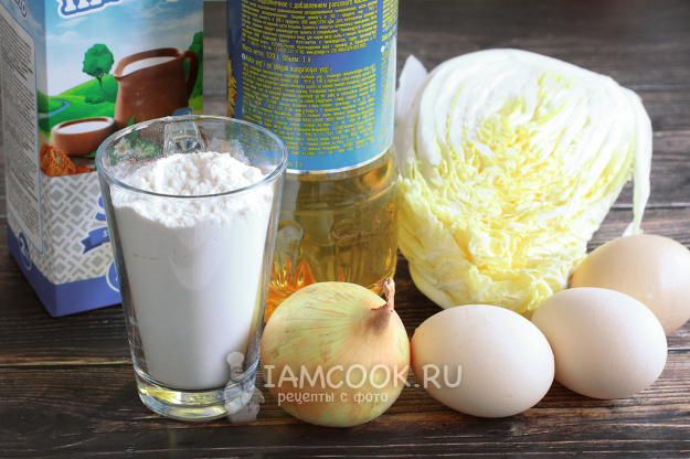 Итак, чтобы приготовить блинчики с пекинской капустой и яйцом в начинке, подготовьте все необходимое по списку.