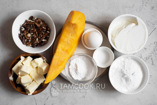 Подготовим необходимые ингредиенты для открытого песочного пирога с тыквой и грецкими орехами. Тыкву освободим от кожуры и семян.