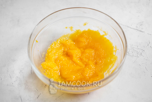 Приготовим начинку. Запеченную тыкву выложим в миску.