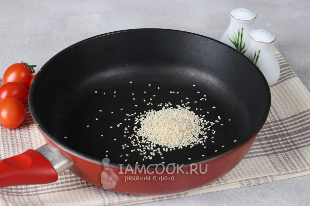 Кунжут слегка обжарить на сухой сковороде.