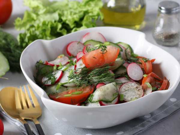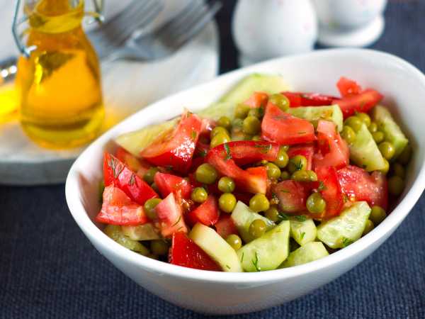 Все нарезанные овощи всыпьте в глубокую посуду и перемешайте.