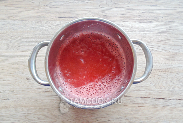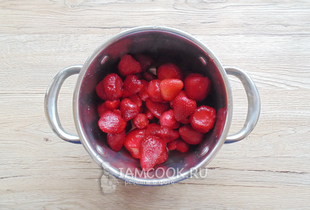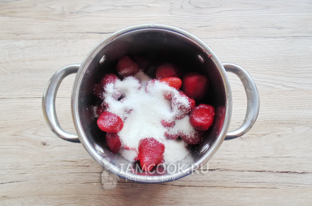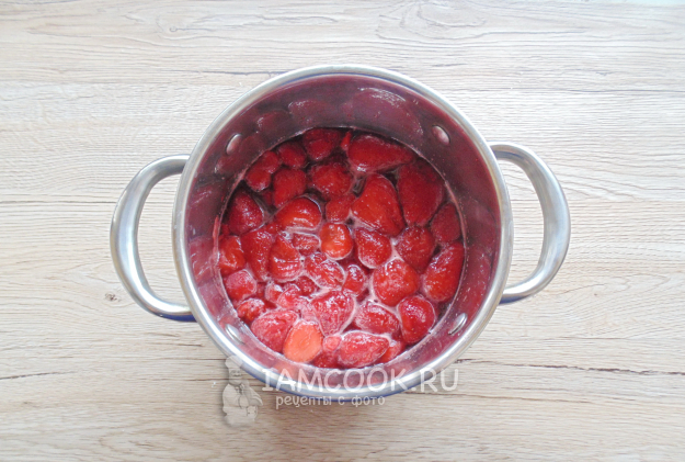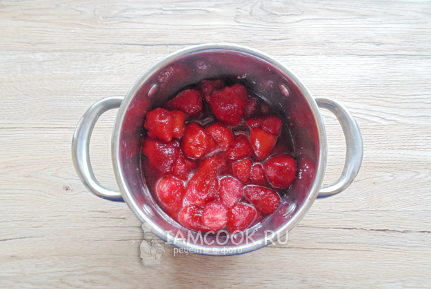Дайте ягоде пустить сок. На это потребуется 3-4 часа. Но если вы спешите, налейте в кастрюлю 50 мл воды и поставьте на плиту. Через 5-6 минут появится сок.