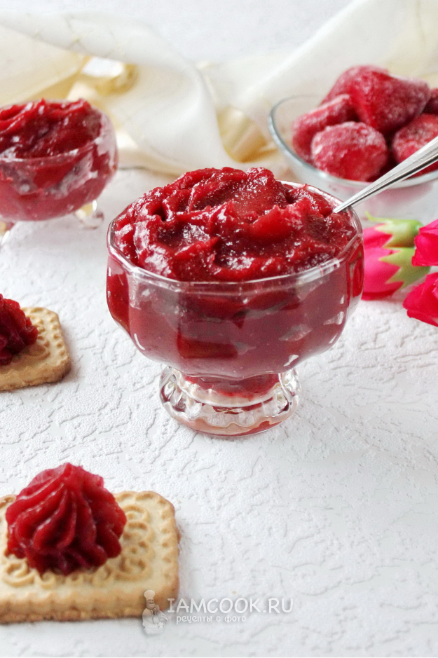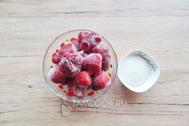 Для приготовления клубничного джема из замороженной клубники потребуется всего два ингредиента: замороженная клубника и сахар.