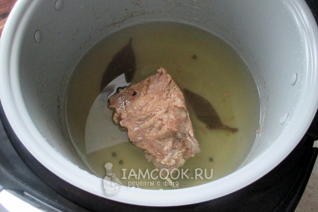 Филе говядины нужно сварить заранее. На это потребуется не менее двух часов. В качестве специй добавьте в воду для варки мяса горошины перца черного и/или душистого и лавровый лист. Солите примерно через час от начала варки, и то немножко.