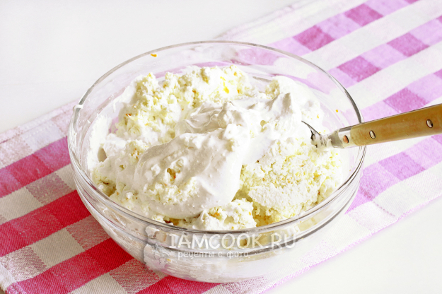 Соедините взбитые белки с творожной начинкой.