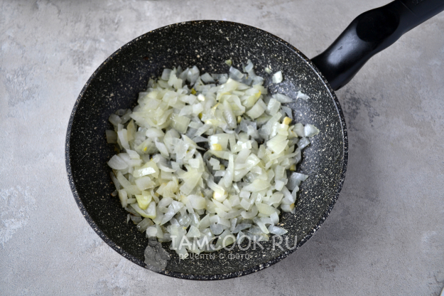 Помешивая, пассеруйте лук в течение 5-6 минут на умеренном огне.