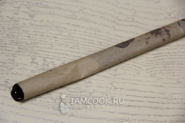 Свернуть пергамент с шоколадом в трубочку. Можно ширину закрутки сделать более плоской, тогда "кора" будет пошире. Убрать шоколадный декор в холодильник на 20-30 минут, я поместила в морозилку на 15 минут.