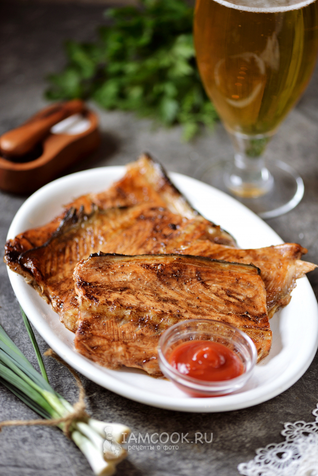 Аккуратно помойте и обсушите лососевый хребет, нарежьте его большими кусками.