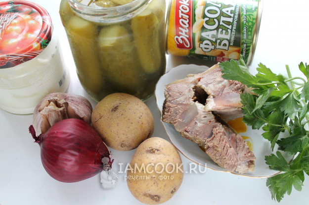 Подготовим ингредиенты для салата «Цада» с фасолью и говядиной.