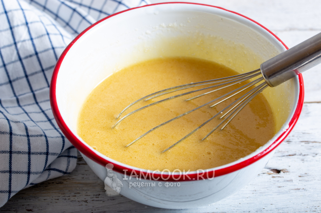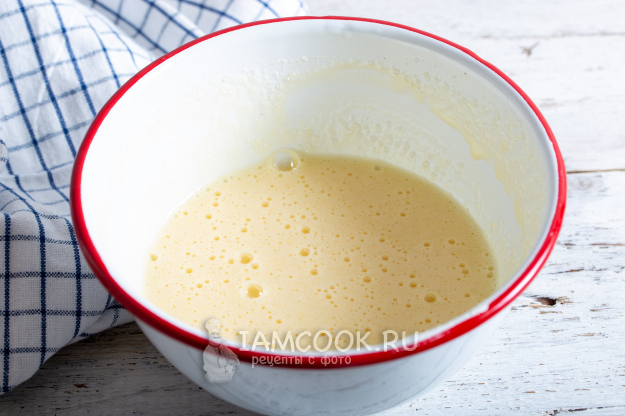 Всыпьте соду и продолжайте мешать, пока масса не станет сначала светлее и пышнее.