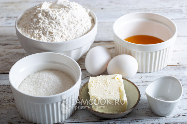 Подготовьте указанные ингредиенты для торта «Медовик» с кремом маскарпоне. Яйца лучше взять категории С0, количество сахара можно уменьшить по своему вкусу, учитывая, что и мёд сладкий, и в креме также будет сахар. Также рекомендую выбрать, какого размера хотите торт, и для этого подобрать тарелку (или дно от разъёмной формы) для обрезания коржей.