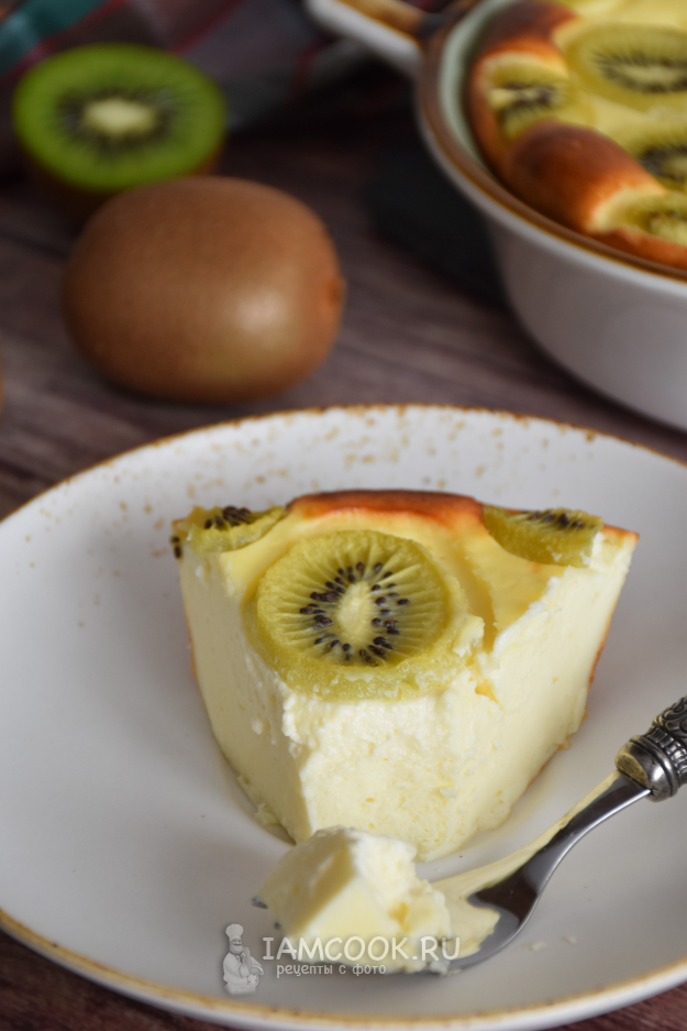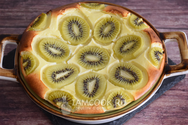 Творожная запеканка с киви готова. Подавать со сметаной. Приятного аппетита!