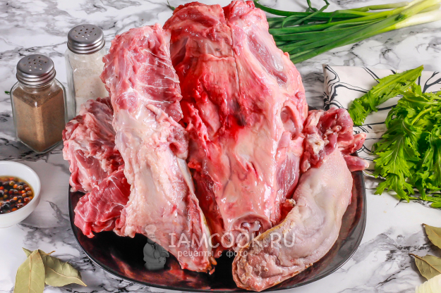 Подготовьте необходимые ингредиенты для создания вкусной и румяной колбасы из свиной головы в домашних условиях.