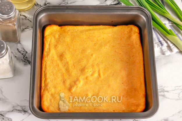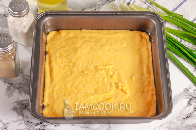 Разогрейте духовку до 180 градусов. Смажьте форму растительным маслом, заходя и на бортики. Влейте тесто в форму и аккуратно разровняйте.
