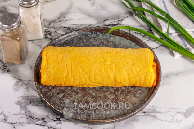 Аккуратно скрутите все рулетом и оставьте его остывать примерно на 30 минут в холодильнике. Выпечка подается к столу охлажденной.