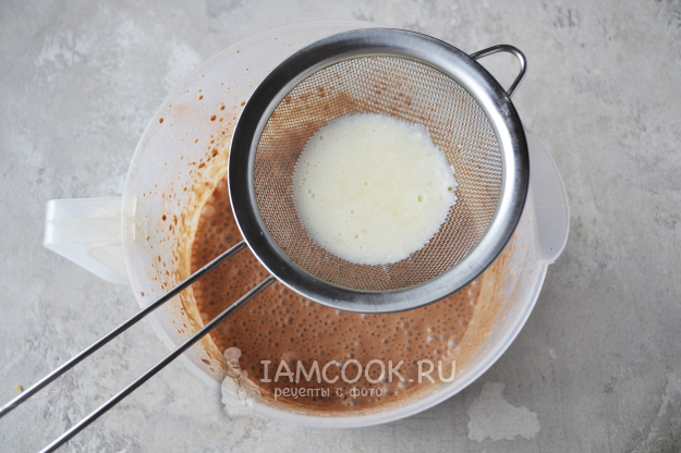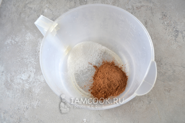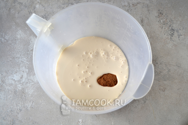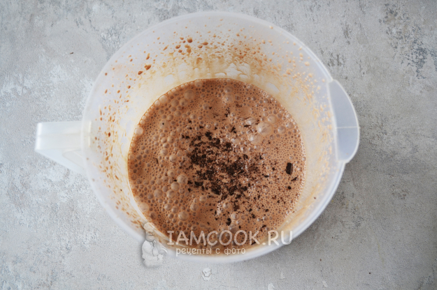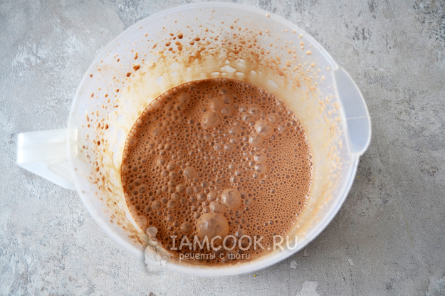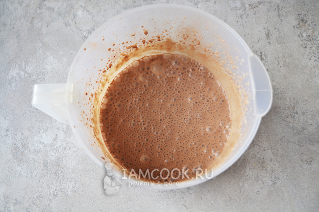 Миксером взбейте ряженку с какао-порошком и сахаром.