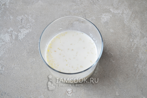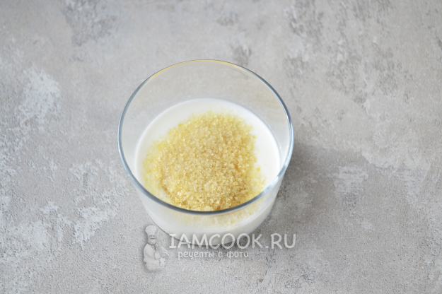 Первым делом залейте желатин молоком и оставьте для набухания в соответствии с рекомендациями на упаковке.