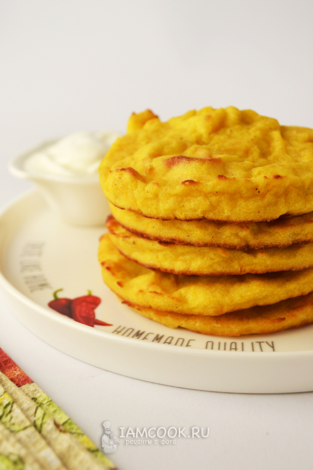 На стол запеченные в духовке оладьи из тыквы хорошо подать со сметаной, медом или сладким соусом и чашечкой чая.