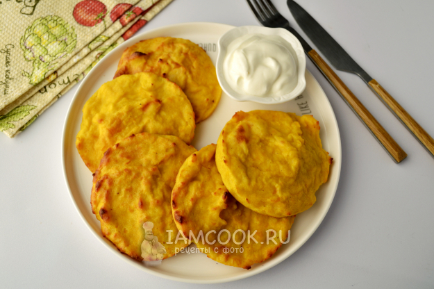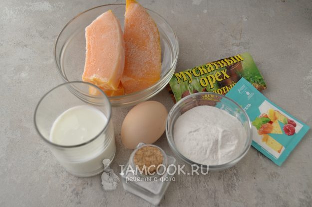 Подготовьте продукты для приготовления оладий из тыквы в духовке.