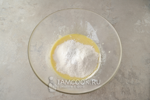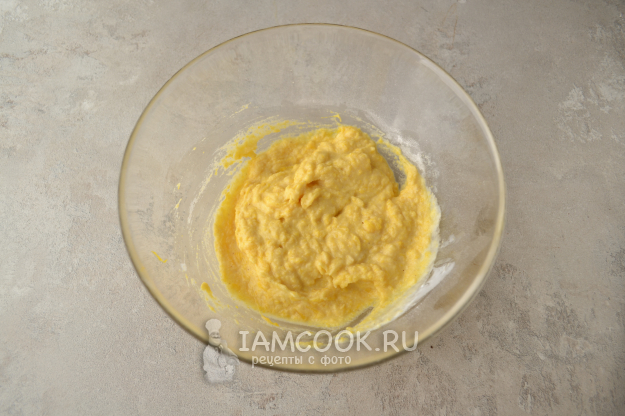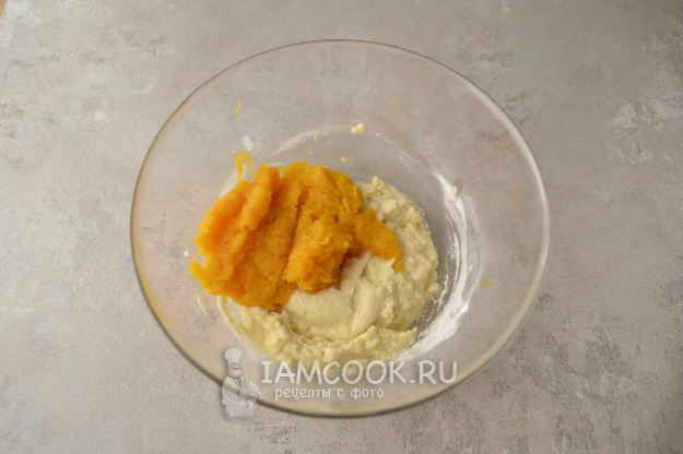 Перемешайте муку с кефирно-яичной массой, добавьте тыквенное пюре.