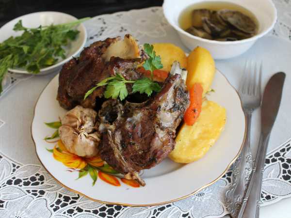 После истечения времени попробуйте жаркоп на вкус, если нужно - досолите и посыпьте рубленым чесноком и кинзой. Подержите под крышкой пару минут для стерилизации, и жаркоп готов.