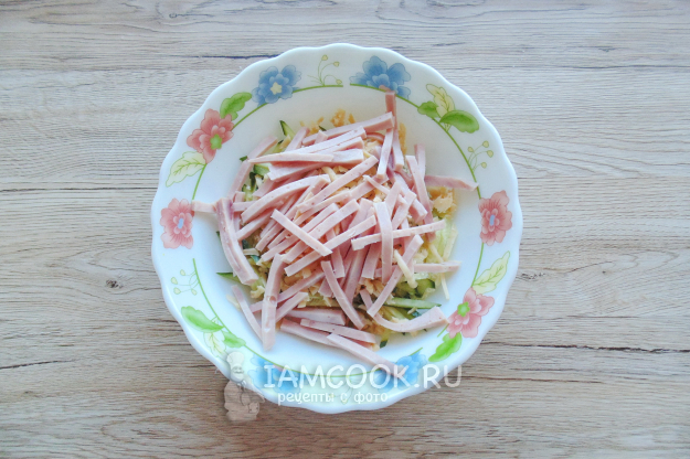 Ветчину тоже нарежьте соломкой.