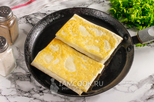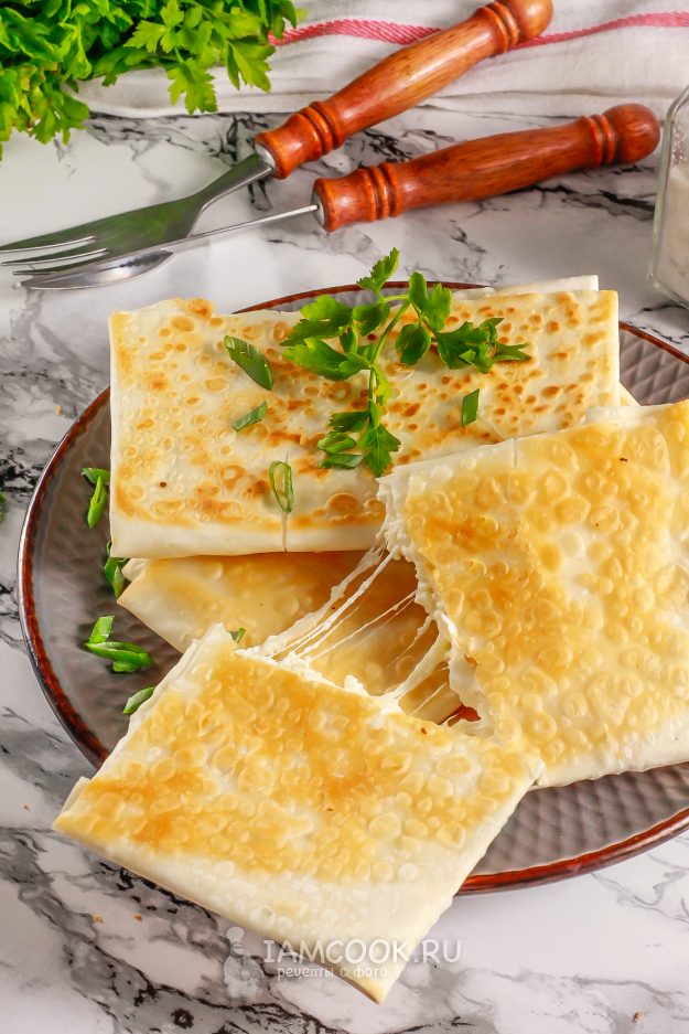 Обжарьте таким образом и остальные заготовки, выложите их на тарелку. Присыпьте измельченной зеленью и подайте к столу теплыми. Не забудьте заварить ароматный чай! Посмотрите, как идеально тянется начинка!