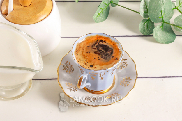Вскипятите воду в чайнике и заварите кофе в 50 мл кипятка. Аккуратно размешайте и слегка остудите.
