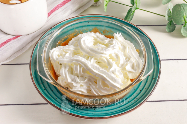 Добавьте в крем взбитые сливки и аккуратно перемешайте, поднимая крем со дна емкости.