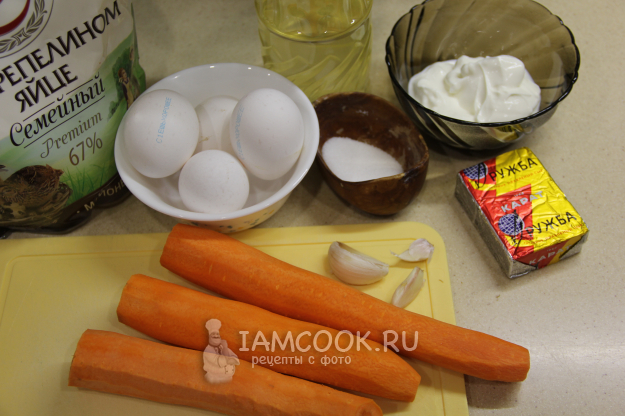 Подготовить продукты для яичного рулета с морковью. Морковь почистить.