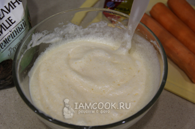 Аккуратно перемешать массу лопаткой. Масса получится очень воздушной и пышной.
