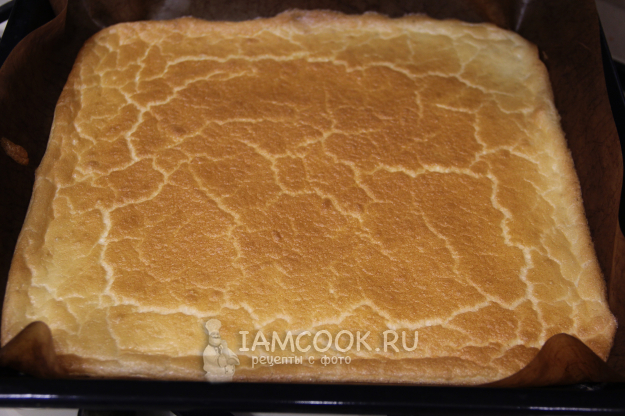 Готовый рулет освободить от пергамента и нарезать на кусочки.