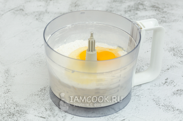 Затем добавьте яйцо и быстро приготовьте тесто, которое будет напоминать мокрый песок, но в то же время если вы сожмете его в кулаке, оно образует комок.