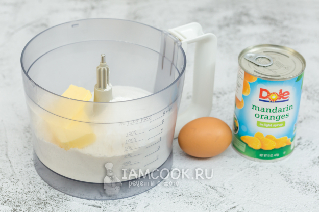Для приготовления насыпного пирога с мандаринами подготовьте продукты по списку.