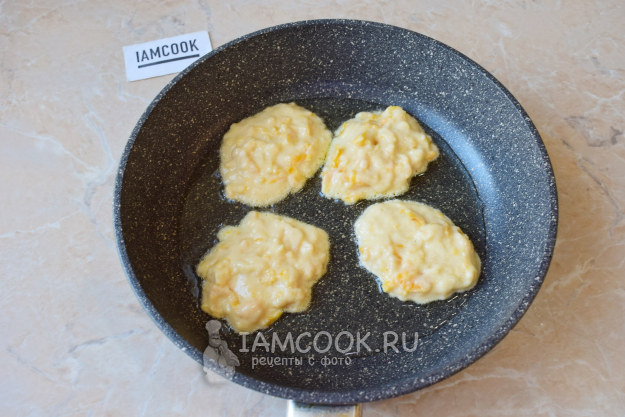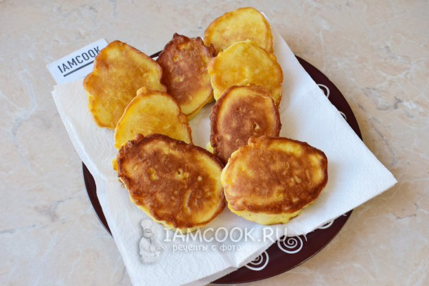 Готовые оладьи снимите на бумажное полотенце, чтобы удалить с них лишнее масло.
