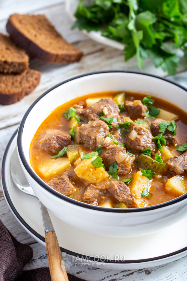 Готовое азу подавайте горячим как самостоятельное блюдо, предложив свежую зелень и хлеб.