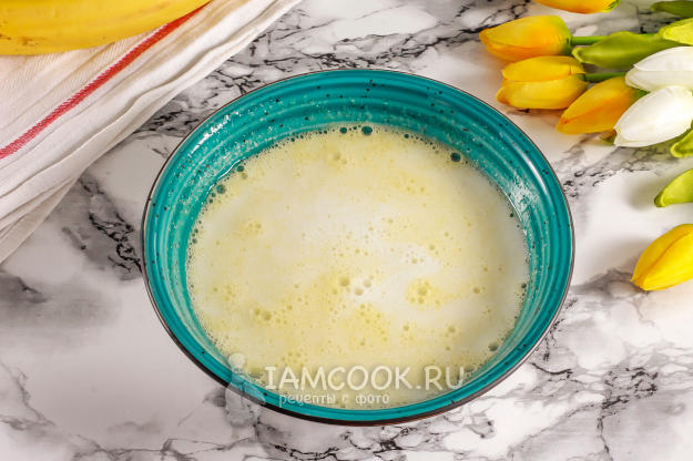 Влейте молоко любой жирности и любого сорта, еще раз все взбейте.