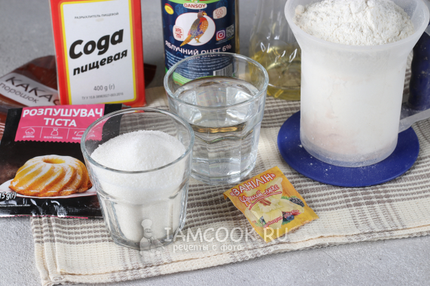 Для приготовления постных шоколадных маффинов подготовить из списка необходимые ингредиенты.