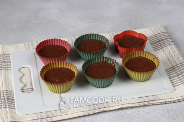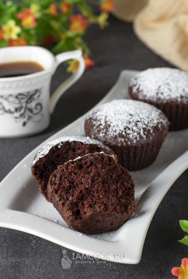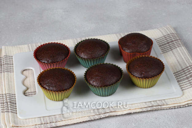 Разогреть духовку до 180 градусов и выпекать постные шоколадные маффины 15-20 минут. Готовность проверить с помощью деревянной шпажки, на ней не должно оставаться влажного теста.