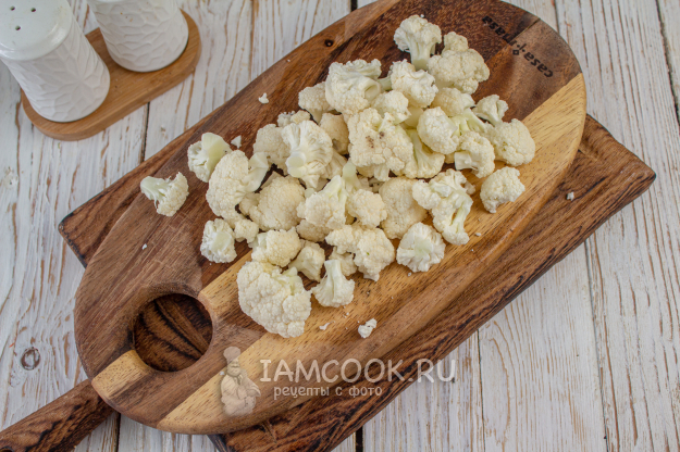Цветную капусту промойте, обсушите и разберите на небольшие соцветия.