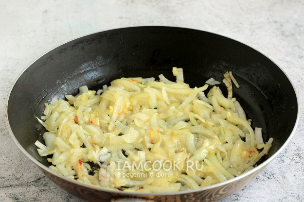 Крупную луковицу разделите на 4 части. Одну четвертую часть оставьте в сыром виде, а три четверти лука позже обжарьте.