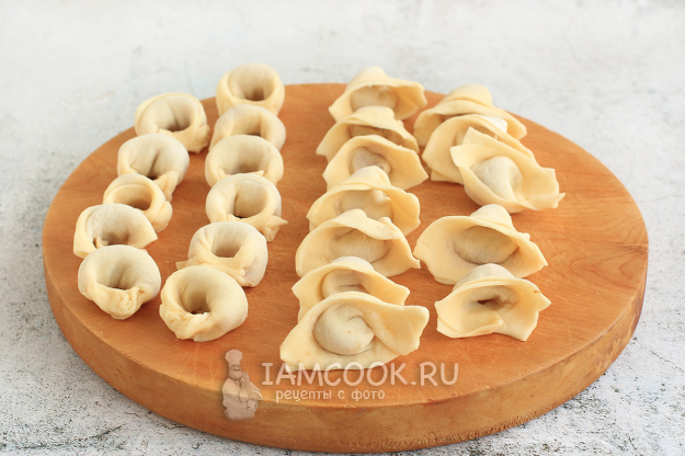 Удобным способом слепите пельмени. Показываю два варианта, мне больше нравятся ушастенькие)). Часть пельменей мы сразу замораживаем.