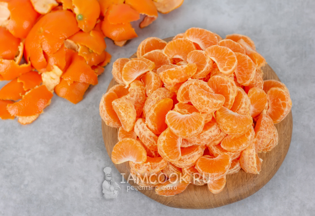 Тем временем очистите и разберите на дольки мандарины. У меня в очищенном виде вес долек составил 615 граммов.