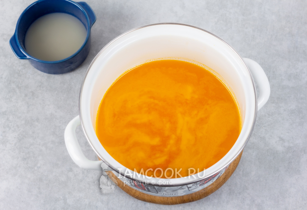 Уменьшите огонь до небольшого. Добавьте в кастрюлю агар-агар. Перемешайте.