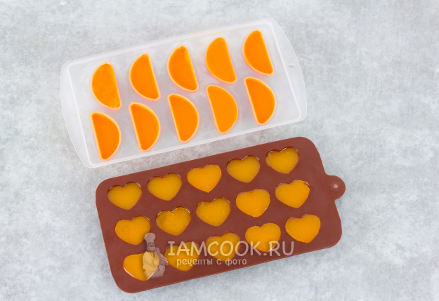 Охладите мармелад до комнатной температуры, а затем уберите в холодильник для окончательного охлаждения и застывания. Небольшие мармеладные конфеты застывают буквально за 10-15 минут. В большой форме мармеладу для застывания понадобится чуть больше времени (в зависимости от толщины слоя).