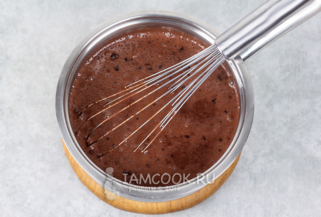 На среднем огне доведите смесь до кипения, периодически помешивая венчиком, чтобы какао и сахар полностью растворились.