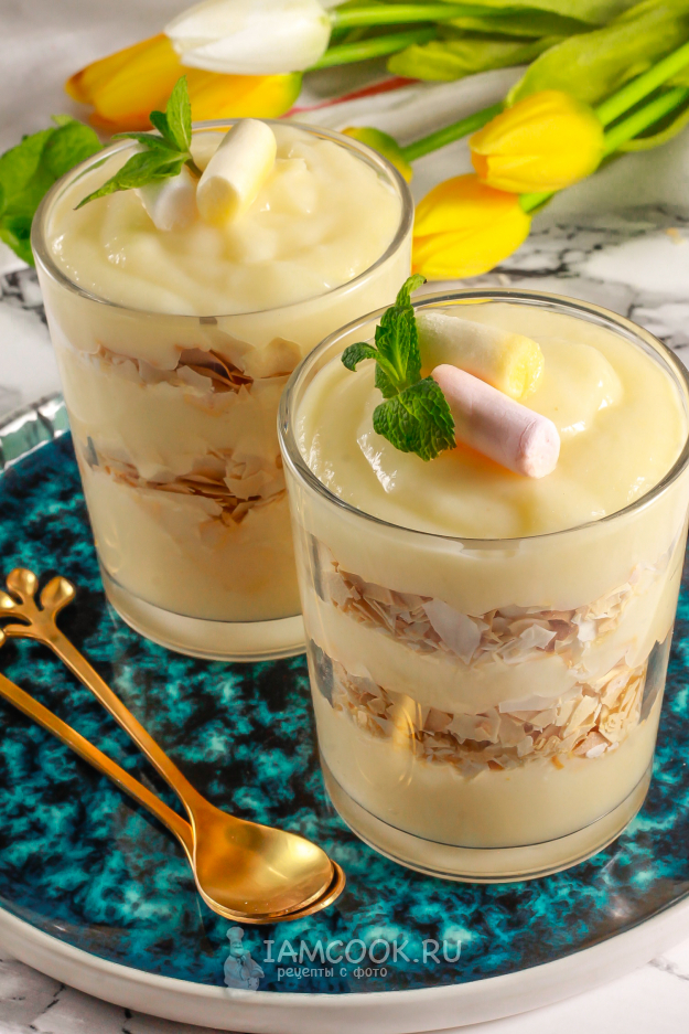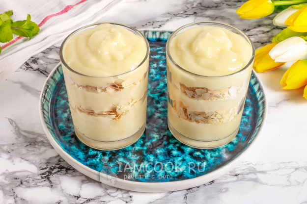 Подготовьте необходимые ингредиенты для создания слоеного десерта «Наполеон» в стаканах.