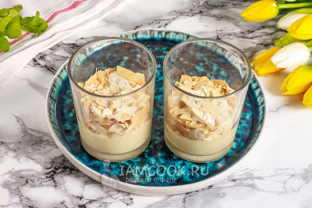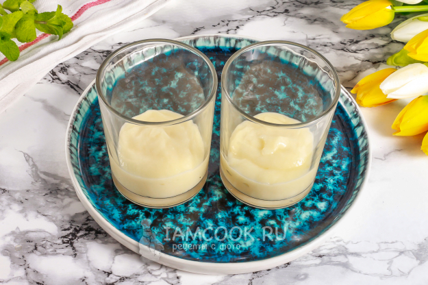 За указанное время охладится и крем, и тесто. Выложите в стаканы по 2 ст.л. приготовленного крема.