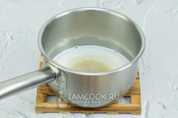 Смешайте сахар и молоко. Доведите до кипения и полного растворения сахара.